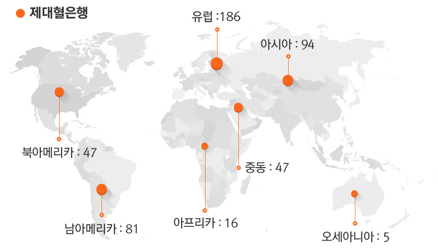 이렇듯 소중한 생명자원인 제대혈을 미리 보관하기 위해 1990년대 초 의료 선진국에서는 제대혈은행이 설립되었고, 현재 전 세계 대부분의 국가에서 수백 개의 제대혈은행이 운영되고 있습니다. 우리나라에서는 1997년부터 제대혈은행이 설립되기 시작했으며, 본격적으로 2000년 이후부터 제대혈이 보관되고 제대혈 이식도 시행되고 있습니다. 2011년 ‘제대혈 관리 및 연구에 관한 법률’이 시행되면서 전 세계에서 가장 모범적으로 안전하게 제대혈을 보관하는 국가가 되었습니다.
