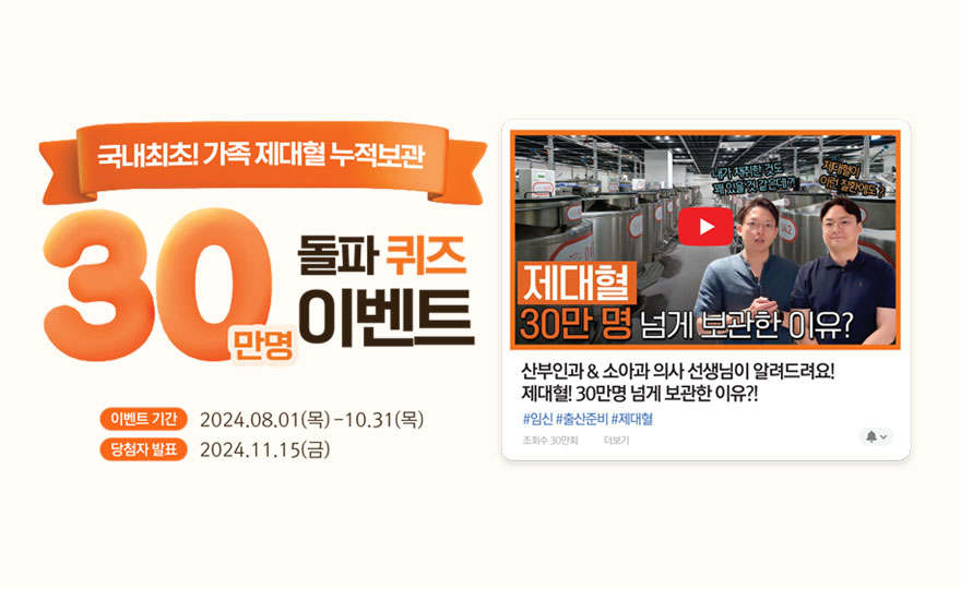2024년 10월까지 진행된 셀트리 ‘가족제대혈 누적보관 30만명 돌파 퀴즈 이벤트’ 에 참여해주신 모든 분들께 감사드립니다.